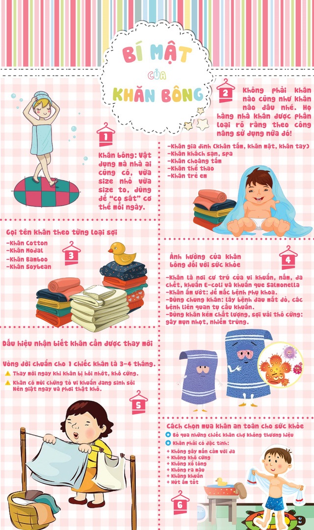 Là vật dụng vô cùng gần gũi trong sinh hoạt hàng ngày, thế nhưng mấy ai hiểu được “nội tình” của một chiếc khăn bông. Ngoài công dụng lau khô người, còn có cả những bí mật phía sau chiếc khăn ấy.
